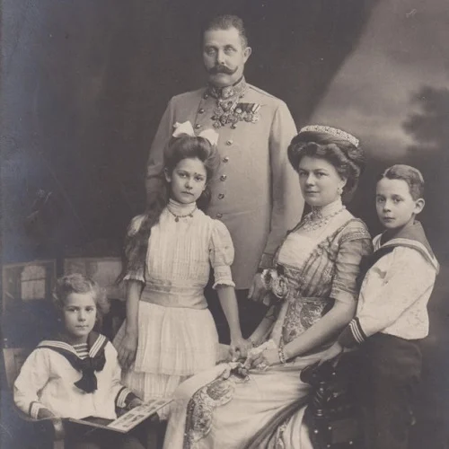 A furious Emperor Franz Josef refused to agree to the marriage as he believed Ferdinand was marrying beneath his station. But, in the end, he relented when Pope Leo XIII, Tsar Nicholas II and Kaiser Wilhelm II intervened on Ferdinand’s behalf. The Emperor insisted on one condition – Ferdinand had to agree to a morganatic marriage. Usually concerning royal marriages, this is a marriage between those of unequal social rank, and prevents the passing of the husband’s titles and privileges to the wife and their children. This meant that Sophie would not have royal status, was not allowed to accompany her husband to any official function, and their children’s rights of succession were renounced. They married in 1900; the emperor, and most of the royal court, refused to attend.