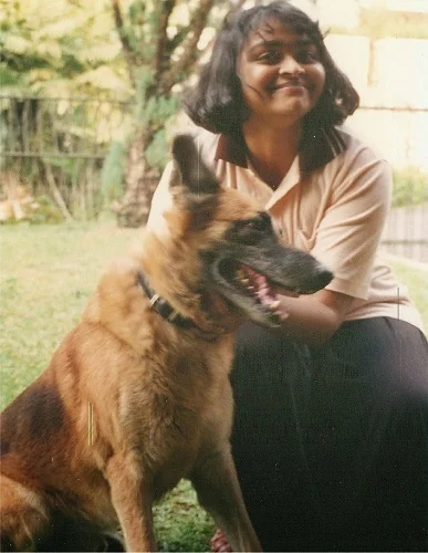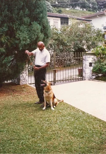 Every day my dad would put Prince through his paces – they’d start by going for a walk. My parents' house was at the top of a hill; it sounds solitary but it wasn’t, there were houses lining the road all the way up … and with every other person owning a dog, it had a tendency to get quite noisy. My dad and Prince would walk all the way down, and back up again by a different route. On a leash, walking by my dad’s side, he did look ‘the business’. People in the neighbourhood soon got used to seeing them walking up and down, and were very taken with Prince, though none would get too close. Then, in the front garden, Prince would be given the different commands he’d learnt at ‘school’. It was so cute to watch him – his attention riveted on my dad, watching his every move, listening to his every word. And he’d get tons of praise for it.