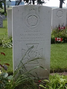 The citation for Lt. Dease’s VC: “Though two or three times badly wounded he continued to control the fire of his machine guns at Mons on 23rd August until all his men were shot. He died of his wounds.”