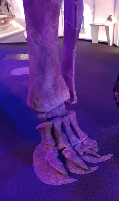 An interesting feature of this dinosaur is the difference between its front and back feet; the front feet are basically block-like while the back feet have claws.